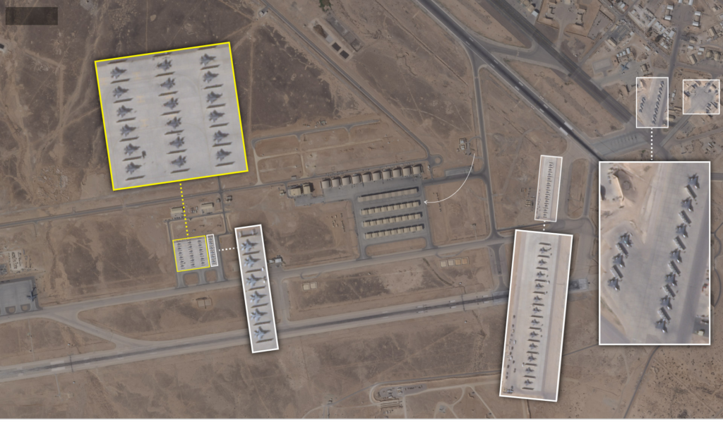 Η αεροπορική βάση Muwaffaq Salti στην Ιορδανία αποτελεί βασικό προορισμό για τις αμερικανικές αεροπορικές δυνάμεις που εισρέουν στην περιοχή. Περισσότερα από 60 πολεμικά αεροσκάφη ήταν ορατά σε δορυφορικές εικόνες που ελήφθησαν την Παρασκευή. Στις εικόνες, περισσότερα από δώδεκα μαχητικά αεροσκάφη F-35 είναι παραταγμένα σε έναν αεροδιάδρομο. Αυτά τα αεροσκάφη χρησιμοποιούνται συχνά για να επιτεθούν στην αεράμυνα ενός αντιπάλου, δημιουργώντας μια ασφαλέστερη διαδρομή για να ακολουθήσουν άλλα αεροσκάφη. Το stealth προηγμένο μαχητικό αεροσκάφος διαθέτει επίσης δυνατότητες ηλεκτρονικού πολέμου, δήλωσε ο Μπρου.