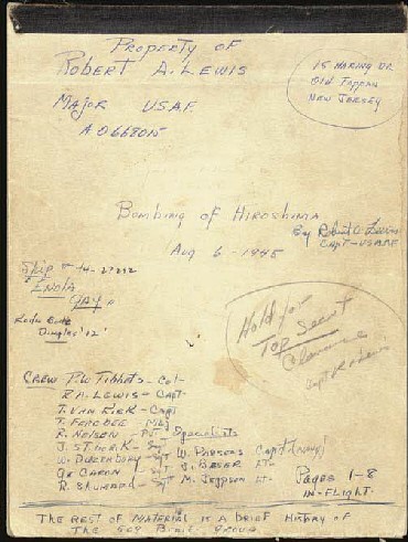 Το ημερολόγιο, διαστάσεων περίπου 25 επί 20 εκατοστά, φέρει στο εξώφυλλο τη σημείωση: «Property of Robert A. Lewis … Bombing of Hiroshima Aug. 6, 1945».