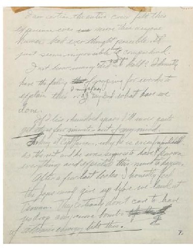 Αργότερα πρόσθεσε μια πιο προσωπική, σχεδόν συντριπτική σκέψη, σε μια σελίδα που κολλήθηκε με ταινία μέσα στο τετράδιο, αμέσως μετά την περιγραφή της έκρηξης. Η κιτρινισμένη ταινία παραμένει ακόμη εκεί.