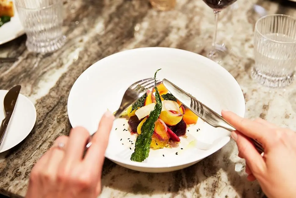 Το tasting menu πέντε πιάτων είναι εκεί όπου αποτυπώνεται καθαρά η ταυτότητα του Boulud. Υπάρχει επίσης πλήρες χορτοφαγικό μενού γευσιγνωσίας, σχεδιασμένο με την ίδια σοβαρότητα και όχι ως εναλλακτική δεύτερης κατηγορίας.