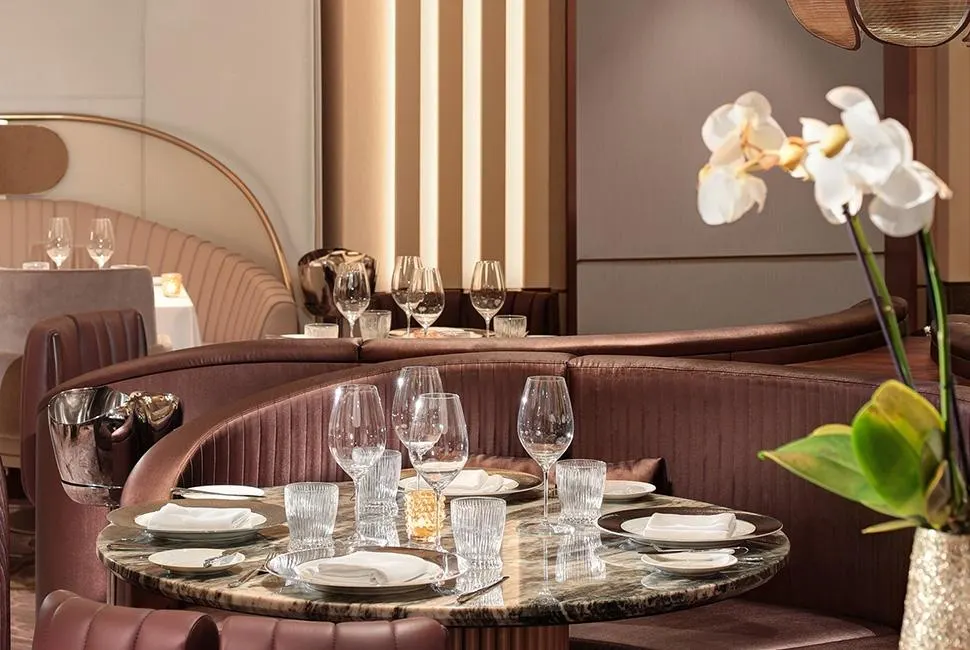 Ο χώρος είναι διακριτικός, με χαμηλό φωτισμό, ήπιες αποχρώσεις και καθίσματα που θυμίζουν private dining room μεγάλου αστικού εστιατορίου. Η αίσθηση είναι ήρεμη, σχεδόν αποκομμένη από τον υπόλοιπο παλμό του πλοίου.