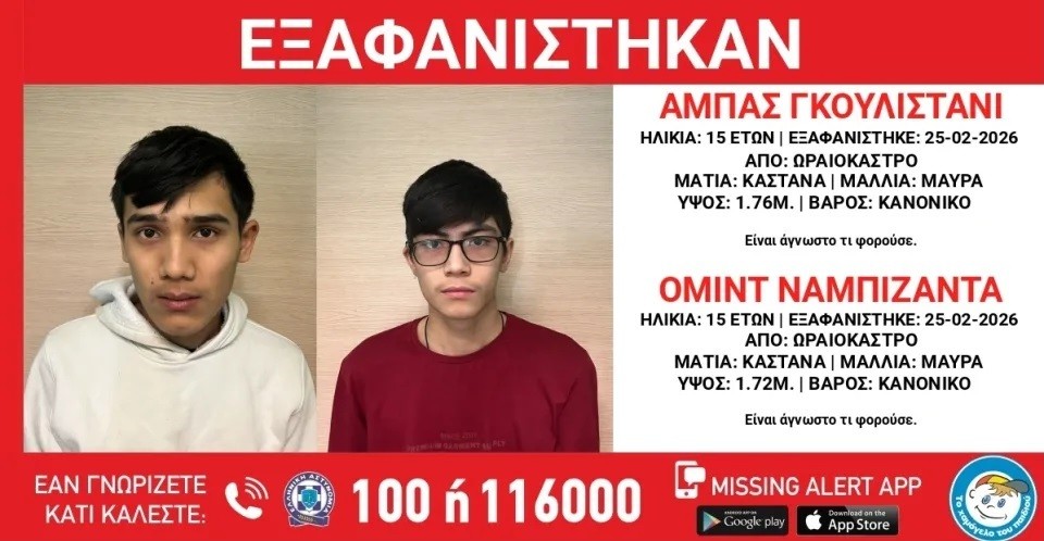 Συναγαρμός έχει σημάνει στις αρχές της Θεσσαλονίκης, μετά την εξαφάνιση δύο 15χρονων παιδιών από χώρο φιλοξενίας ασυνόδευτων ανηλίκων στο Ωραιόκαστρο.