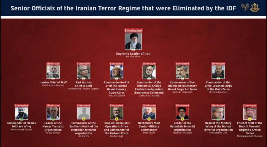 Η δολοφονία του Αλί Χαμενεΐ είναι το αποκορύφωμα μιας συνεχιζόμενης προσπάθειας για την εξάλειψη της ανώτερης ηγεσίας του ιρανικού άξονα του τρόμου καθ’ όλη τη διάρκεια του «Πολέμου της Ανάστασης», συμπεριλαμβανομένων: