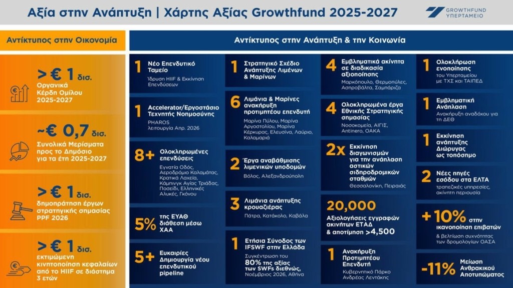 Η διοίκηση του Ομίλου, με τον διευθύνοντα σύμβουλο Γιάννη Παπαχρήστου και τον αναπληρωτή διευθύνοντα σύμβουλο Παναγιώτη Σταμπουλίδη, παρουσίασε τον «Χάρτη Αξίας» της τριετίας, έναν οδικό χάρτη που συνδέει τον στρατηγικό σχεδιασμό με μετρήσιμα αποτελέσματα. Στο επίκεντρο βρίσκεται η ενίσχυση του επενδυτικού ρόλου του Ταμείου, με έμφαση στις συν-επενδύσεις, τη μόχλευση ιδιωτικών κεφαλαίων και την επιτάχυνση εμβληματικών έργων.