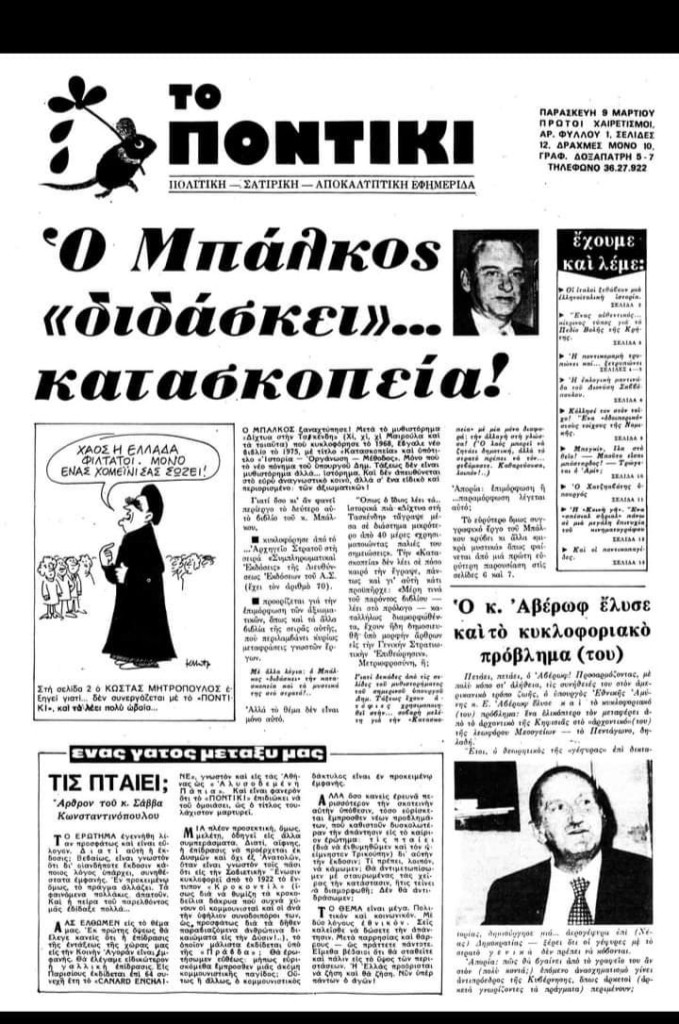 Το πρώτο φύλλο κυκλοφορεί σε μια εποχή όπου η ελληνική δημοκρατία μόλις αναζητεί τη σταθερότητά της, ενώ ο δημόσιος λόγος παραμένει φορτισμένος από ένταση, πάθος και πολιτική αντιπαράθεση. Σε αυτό το περιβάλλον εμφανίζεται μια εφημερίδα με διαφορετικό τόνο: σάτιρα, αιχμή και δημοσιογραφική ματιά που προτιμά την ενόχληση από την ευγένεια.