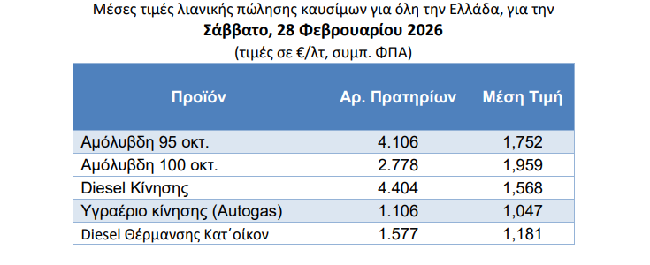 Να σημειωθεί ότι πρόκειται για τις μέσες τιμές λιανικής πώλησης σε όλη την Ελλάδα καθώς υπάρχουν περιοχές της χώρας που ήδη η απλή αμόλυβδη είτε προσεγγίζει είτε έχει ξεπεράσει τα 2 ευρώ το λίτρο.