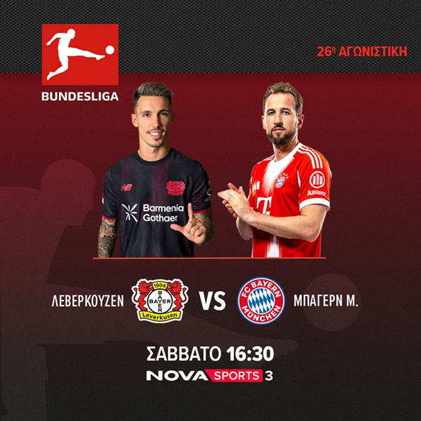 16:30 Bundesliga: Λεβερκούζεν-Μπάγερν Novasports3 σε περιγραφή του Γρηγόρη Παπαβασιλείου