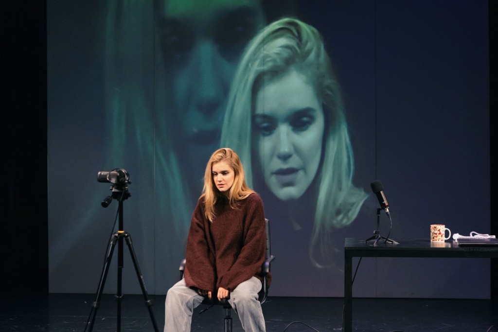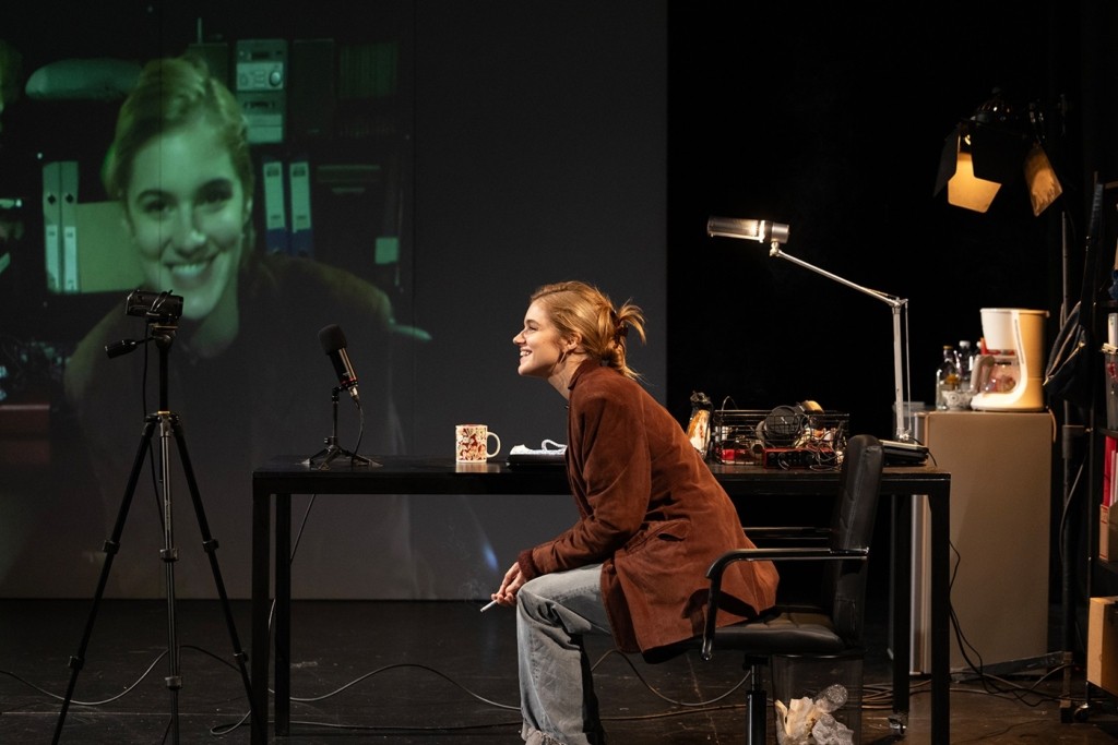 Η παράσταση κινείται ανάμεσα στο θέατρο και την κινηματογραφική καταγραφή, μετατρέποντας τη θεατρική σκηνή σε χώρο προσωπικής αναμέτρησης της ηρωίδας με την ιστορία της, όπου η αφήγηση λειτουργεί ως πράξη επιβίωσης.