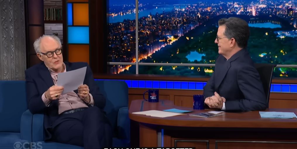 Χθες τη νύχτα (ξημερώματα Τρίτης για την Ελλάδα) ο διακεκριμένος ηθοποιός και ποιητής Τζον Λίθγκοου, καλεσμένος του Κόλμπερτ, με τον τρόπο του υπογράμμισε το «κενό» που θα δημιουργηθεί με τους οριστικούς τίτλους τέλους του προγράμματος και της συνεργασίας του πολυτάλαντου παρουσιαστή με το τηλεοπτικό δίκτυο που τελευταίως «δοκιμάστηκε».