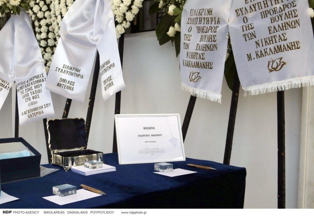 Το τελευταίο αντίο στον Γιώργο Μαρίνο λένε σήμερα συγγενείς, φίλοι και συνάδελφοι του πρώτου Έλληνα σόουμαν, οι οποίοι έχουν συγκεντρωθεί στον ναό του Άγιου Ανδρέα στο κοιμητήριο Βούλας.