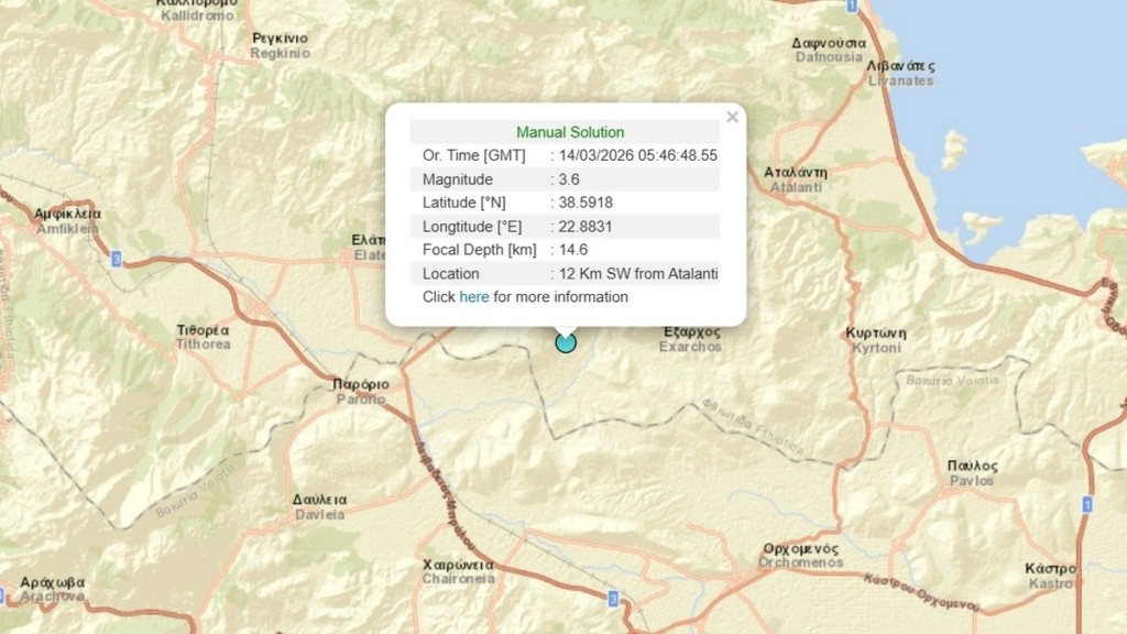 Σύμφωνα με την αναθεωρημένη λύση του Γεωδυναμικού Ινστιτούτου του Εθνικού Αστεροσκοπείου Αθηνών, ο σεισμός -που έγινε αισθητός στην ευρύτερη περιοχή της Φθιώτιδας, της βόρειας Βοιωτίας και της Φωκίδας- είχε εστιακό βάθος 14,6 χιλιόμετρα.