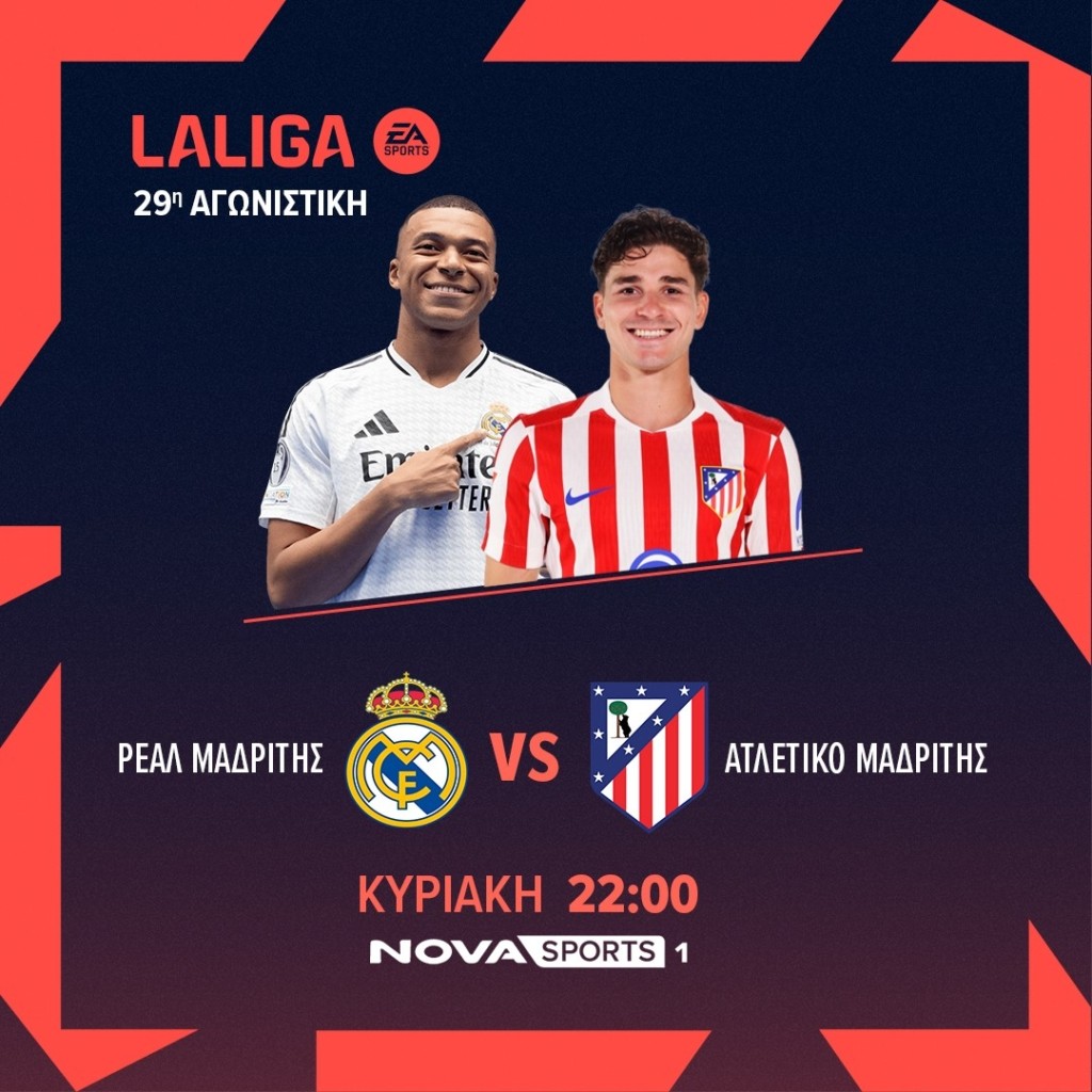 22:00 La Liga: Ρεάλ Μαδρίτης-Ατλέτικο Μαδρίτης Novasports1 σε περιγραφή του Ηλία Βλάχου