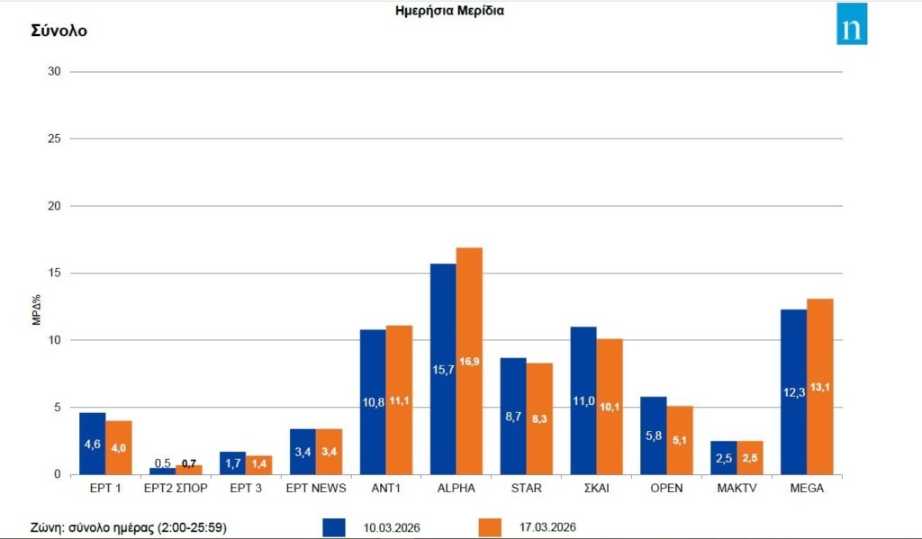 Ανοδικά κινήθηκε ο δείκτης τηλεθέασης και για το Mega, αντίθετη κατεύθυνση πήρε στον ΑΝΤ1, ενώ στον ΣΚΑΪ… δεν πήγε πουθενά.