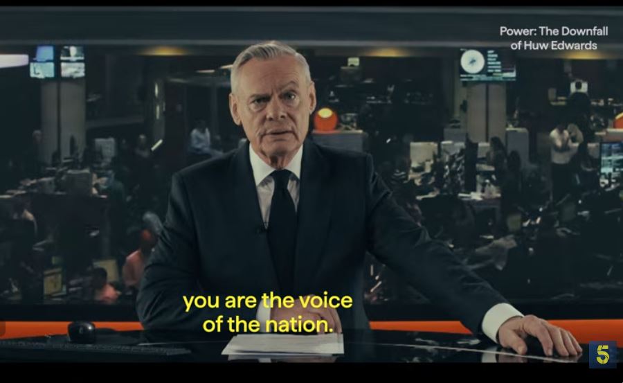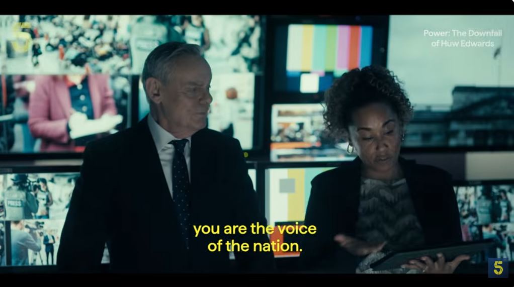 Τώρα το Channel 5 ετοιμάζεται να μεταδώσει μια μίνι σειρά μόλις δύο επεισοδίων με τίτλο «Power: The Downfall of Huw Edwards» («Εξουσία: Η πτώση του Χιού Έντουαρντς») με τον ηθοποιό και σκηνοθέτη Μάρτιν Κλουνς να κάνει τον Έντουαρτς. «Μου έρχεται λίγο φυσικά» είπε ο Κλούνς για τον ρόλο του ως ο διασυρμένος παρουσιαστής της BBC Χιού Έντουαρντς, στο πλαίσιο συνέντευξης τύπου για την σειρά. «Γνώριζα τον Χιού Έντοαρντς, ως παρουσιαστή ειδήσεων, και τον τρόπο με τον οποίο παρουσίαζε τις ειδήσεις», είπε.
