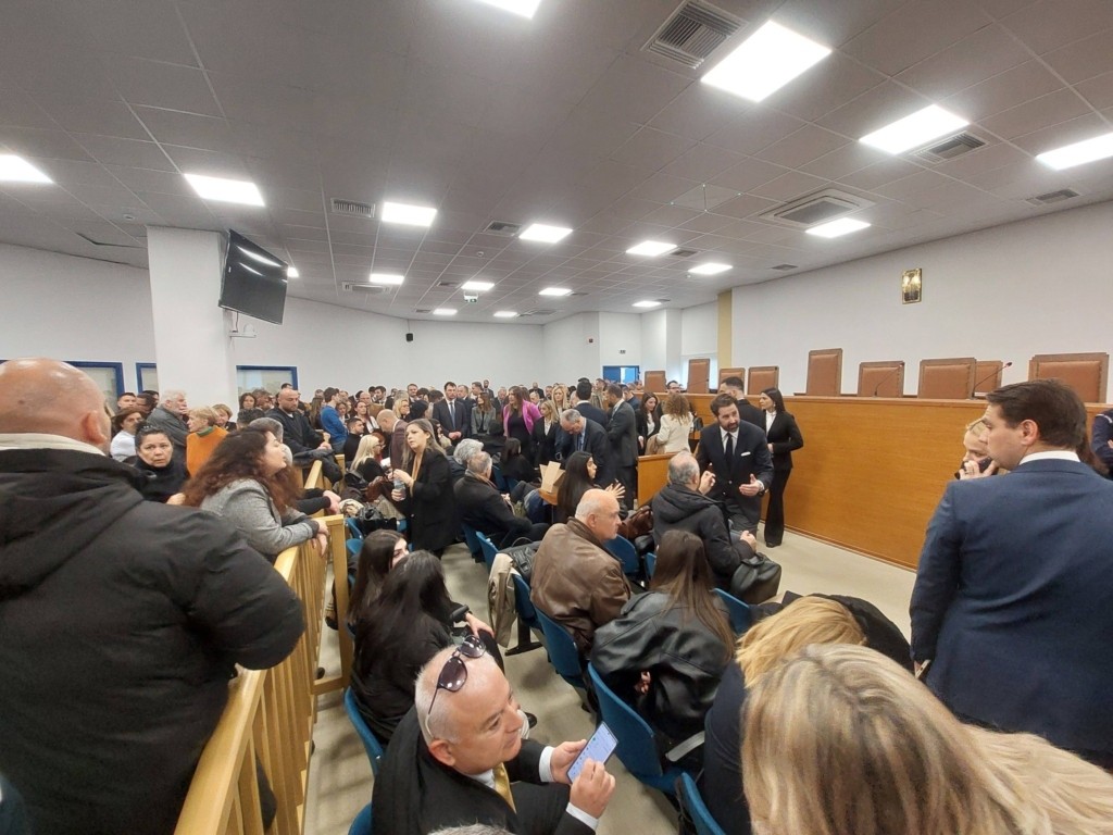 Οι συγγενείς στοιβαγμένοι σαν σαρδέλες, αναγκασμένοι να κάθονται ακόμα και σε έδρανα που είναι προορισμένα για τους κατηγορούμενους, δικηγόροι που μετά βίας χωράνε, περιοριζόμενοι πολλοί να μένουν όρθιοι, και με αδύνατη την παρουσία όλων των δημοσιογράφων – για το κοινό ούτε καν λόγος.