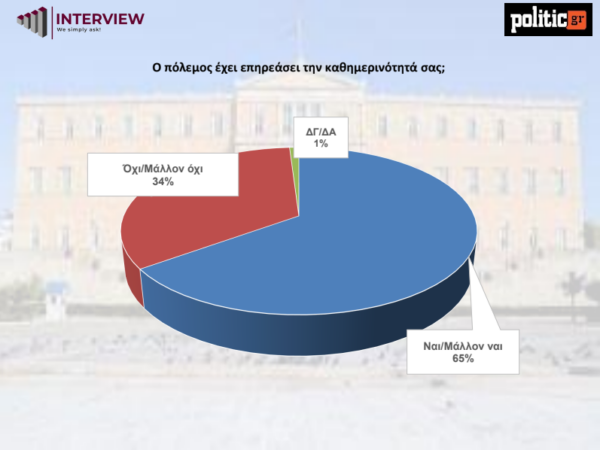 Παράλληλα, το 65% των πολιτών λέει πως η κατάσταση στην περιοχή, έχει επηρρεάσει την καθημερινότητά του.