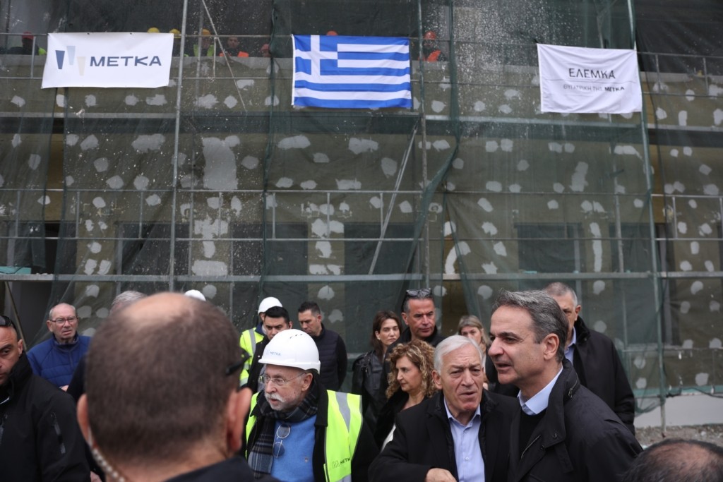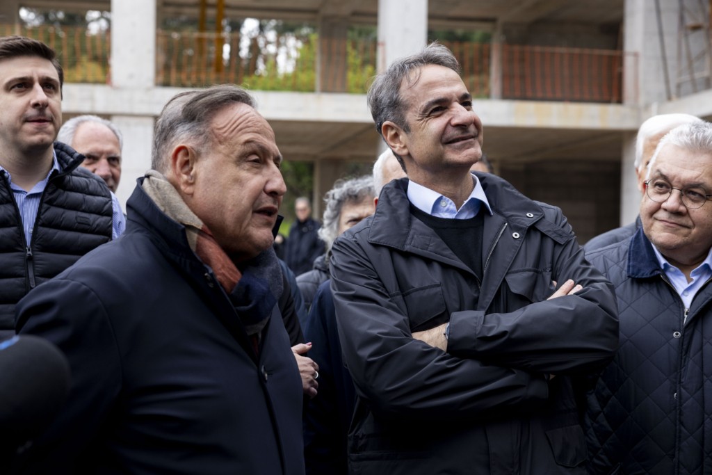 Ο Κυριάκος Μητσοτάκης συνομίλησε με τον Δήμαρχο Θεσσαλονίκης Στέλιο Αγγελούδη κατά την αυτοψία που έκαναν στο υπό κατασκευήν 32ο Γενικό Λύκειο Θεσσαλονίκης.