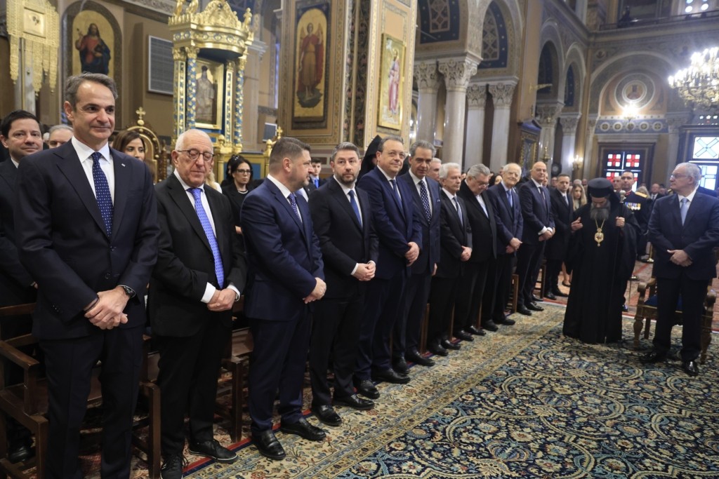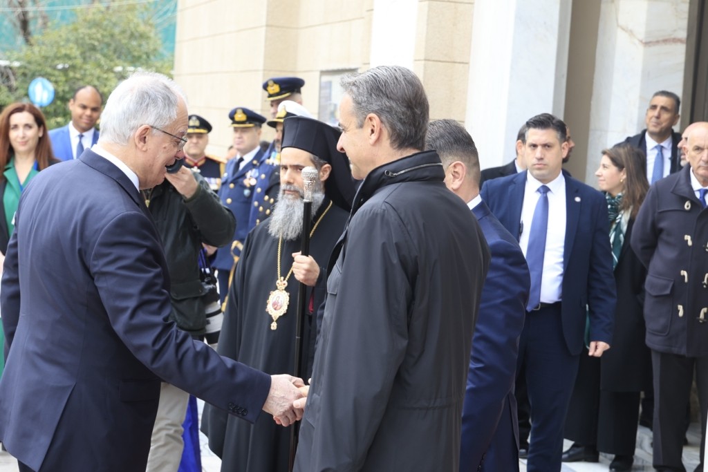Παρόντος του πρωθυπουργού Κυριάκου Μητσοτάκη η τέλεση της δοξολογίας για την 25η Μαρτίου, στην Μητρόπολη Αθηνών.