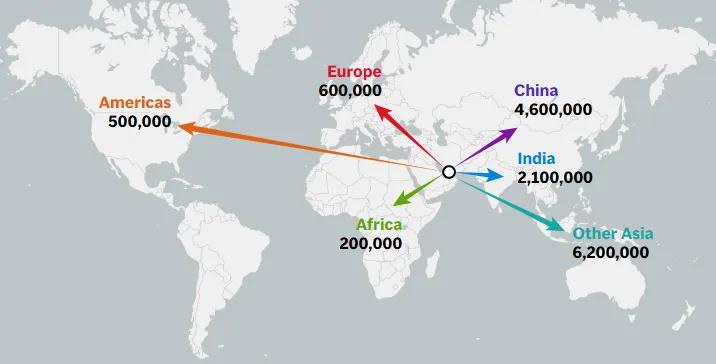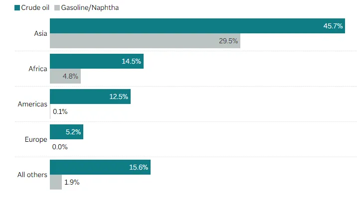 Ένα σημαντικό μέρος του πετρελαίου που διέρχεται από τα Στενά κατευθύνεται προς την Ασία, με την Κίνα, την Ινδία και την Ιαπωνία να αποτελούν τις βασικές αγορές.
