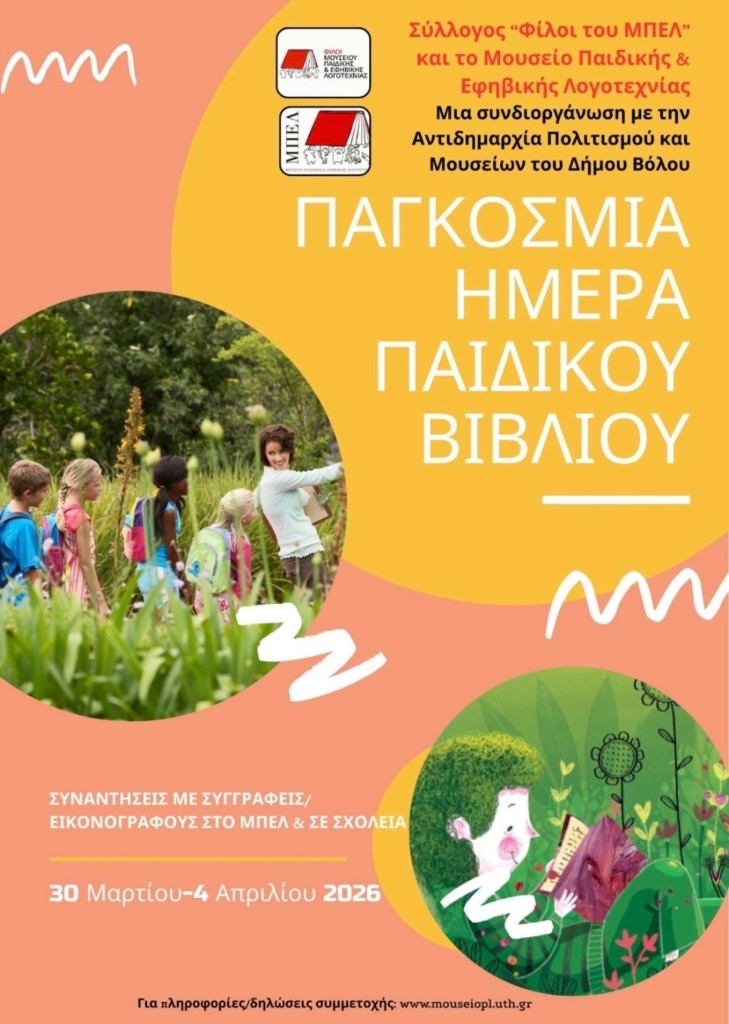 Ο Σύλλογος «Φίλοι του Μουσείου Παιδικής & Εφηβικής Λογοτεχνίας» (ΣΥΦΙΜΠΕΛ), το Μουσείο Παιδικής & Εφηβικής Λογοτεχνίας του Πανεπιστημίου Θεσσαλίας (ΜΠΕΛ), σε συνεργασία με την Αντιδημαρχία Πολιτισμού και Μουσείων του Δήμου Βόλου, διοργανώνουν και φέτος εκδηλώσεις φιλαναγνωσίας και γνωριμίας παιδιών και εφήβων με δημιουργούς. Παράλληλα, θα πραγματοποιηθεί και σεμινάριο/εργαστήριο για εκπαιδευτικούς.