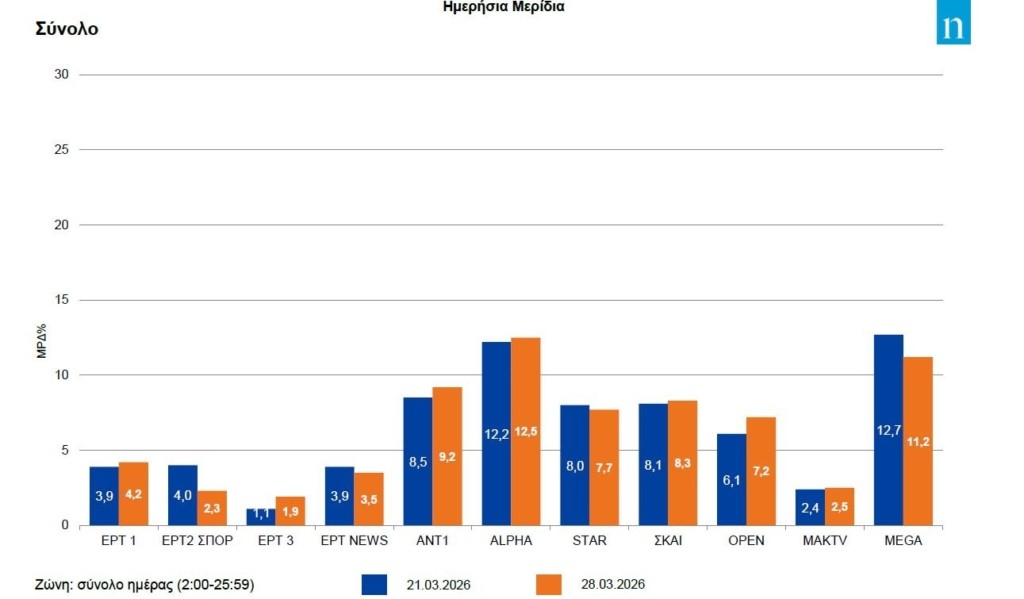 Το Σάββατο, ημέρα του διήμερου που συνήθως καταγράφεται η μεγαλύτερη μετακίνηση τηλεθεατών από τα καθιερωμένα κανάλια, το Mega ήταν το δεύτερο με διψήφιο μερίδιο. Επίσης το Open «χτύπησε» ένα 7,2% και σχεδόν απείλησε το Star.