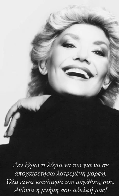 «Δεν ξέρω τι λόγια να πω για να σε αποχαιρετήσω αγαπημένη μορφή. Όλα είναι κατώτερα του μεγέθους σου. Αιώνια η μνήμη σου αδελφή μας» έγραψε η Χάρις Αλεξίου.
