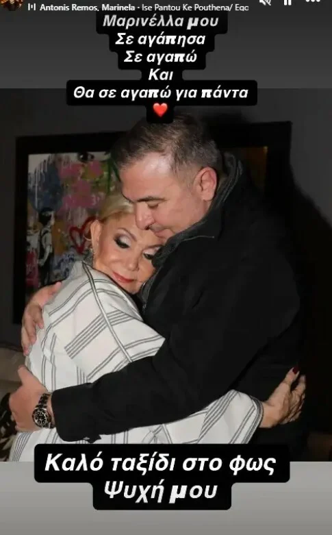 Νωρίτερα, ο Αντώνης Ρέμος είχε αποχαιρετήσει τη σπουδαία Μαρινέλλα με μια συγκινητική ανάρτηση στο Instagram.