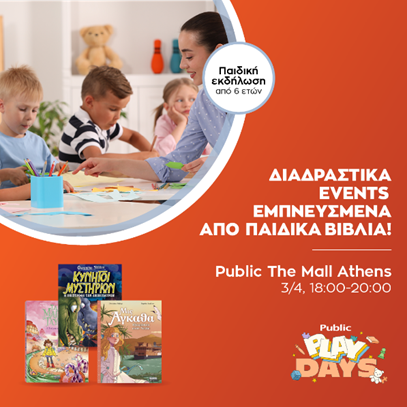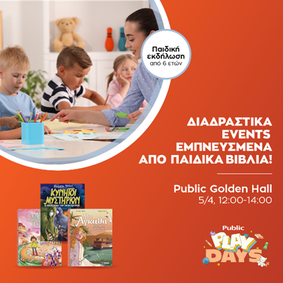 Φέτος το Πάσχα, τα Public γεμίζουν παιδικές φωνές, χρώματα και φαντασία! Οι μικροί μας επισκέπτες θα έχουν την ευκαιρία να συμμετάσχουν σε διαδραστικά events εμπνευσμένα από τις αγαπημένες σειρές βιβλίων των Εκδόσεων Ελληνικά Γράμματα και να ζήσουν από κοντά τον μαγικό τους κόσμο.