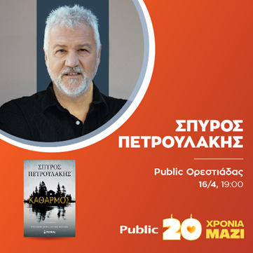 Τα Public και οι εκδόσεις Μίνωας σε προσκαλούν στην παρουσίαση του νέου βιβλίου του Σπύρου Πετρουλάκη «Καθαρμός», την Πέμπτη 16 Απριλίου στις 19:00, στο Public Ορεστιάδας.
