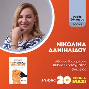 Τα Public και οι εκδόσεις Ιβίσκος σε προσκαλούν στην παρουσίαση του βιβλίου της Νικολίνας Δανιηλίδου «Φάε Όταν Πεινάς, Όχι Όταν Πονάς», την Παρασκευή 3 Απριλίου στις 19:00, στην αίθουσα 5ου ορόφου του Public Συντάγματος.