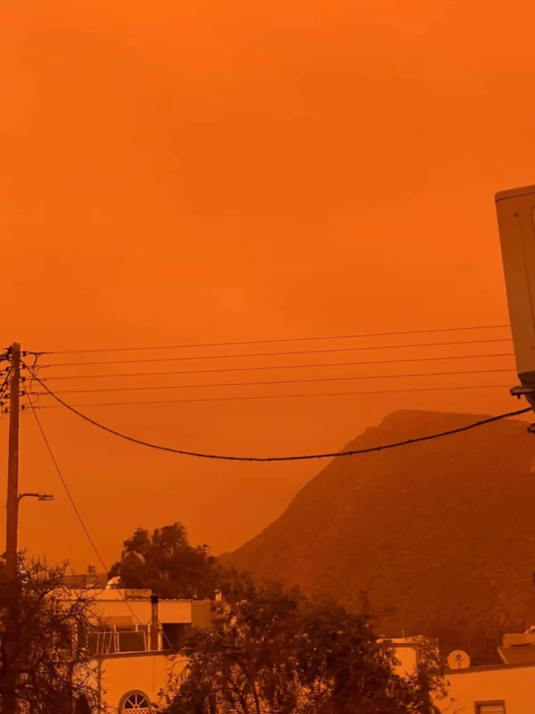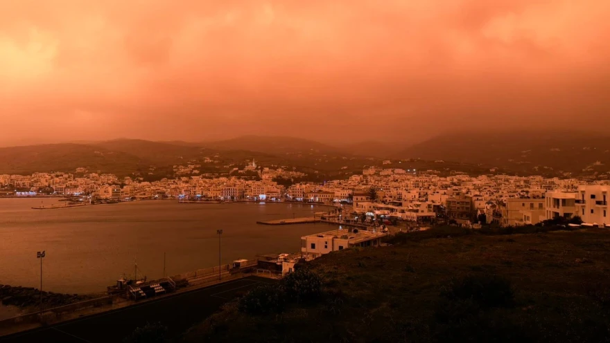 Απόκοσμο είναι το σκηνικό την Πρωταπριλιά στις Κυκλάδες και την Κρήτη καθώς η αφρικανική σκόνη, που ήρθε μαζί με την κακοκαιρία Erminio «κάλυψε» τα πάντα, δίνοντας μας εντυπωσιακές εικόνες από μια δυστοπική πραγματικότητα.