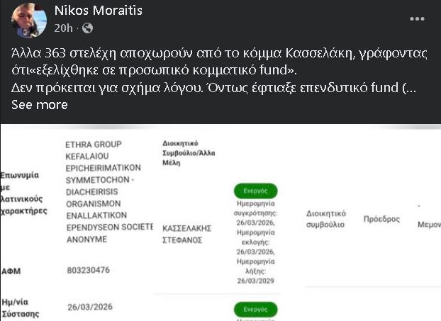 Δεν πρόκειται για σχήμα λόγου. Όντως έφτιαξε επενδυτικό fund (26 Μαρτίου 2026 η πράξη της έναρξης)!
