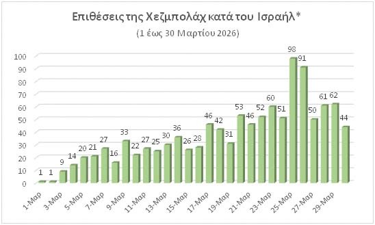 Στη διάρκεια του Μαρτίου 2026, η Χεζμπολάχ πραγματοποίησε συνολικά περισσότερες από 1.100 επιθέσεις.Από την πλευρά του, το Ισραήλ συνεχίζει τις αεροπορικές επιδρομές κυρίως στη Βηρυτό, όπου κατέστρεψε περισσότερα από 100 κτήρια, και την κοιλάδα Μπεκάα, ενώ οι χερσαίες δυνάμεις (91η, 146η και 162η Μεραρχία) επεκτείνουν τη «ζώνη ασφαλείας» στον νότιο Λίβανο.