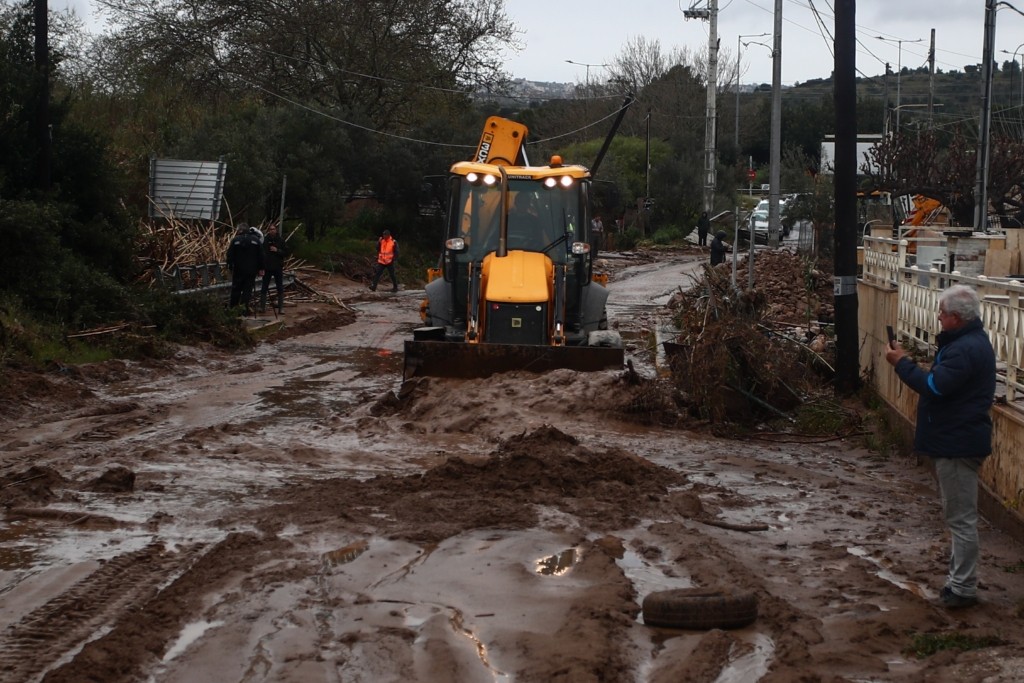 Συνεργεία δήμου και περιφέρειας απομάκρυναν τόνους από πέτρες και χώματα που κατέκλυσαν την οδό Αρίωνα στο Πικέρμι, ενώ στη Ραφήνα η γέφυρα στο ρέμα Βαλλιάνου φράκαρε από φερτά υλικά, με αποτέλεσμα ο χείμαρρος να αλλάξει πορεία και να περάσει μέσα από επιχείρηση οικοδομικών υλικών.