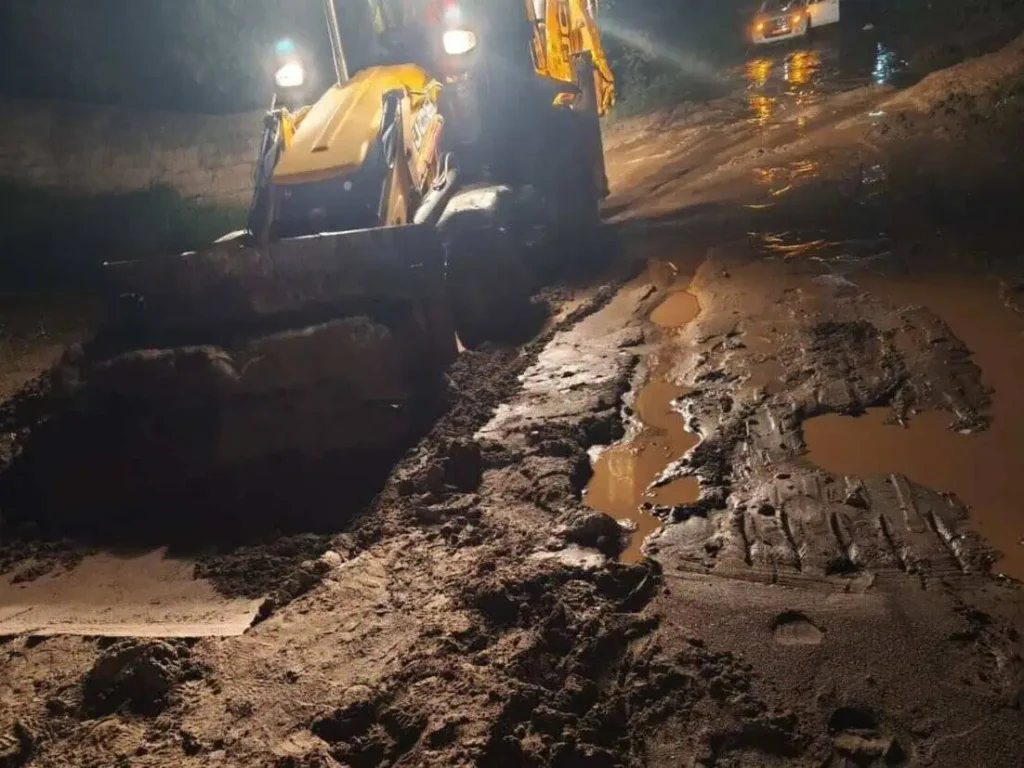 Στην περιοχή της διασταύρωσης Ραφήνας, ο δρόμος έχει κλείσει λόγω σοβαρών ζημιών: Κατεστραμμένα κιγκλιδώματα, λάσπες, φερτά υλικά και πεσμένα καλώδια ρεύματος.