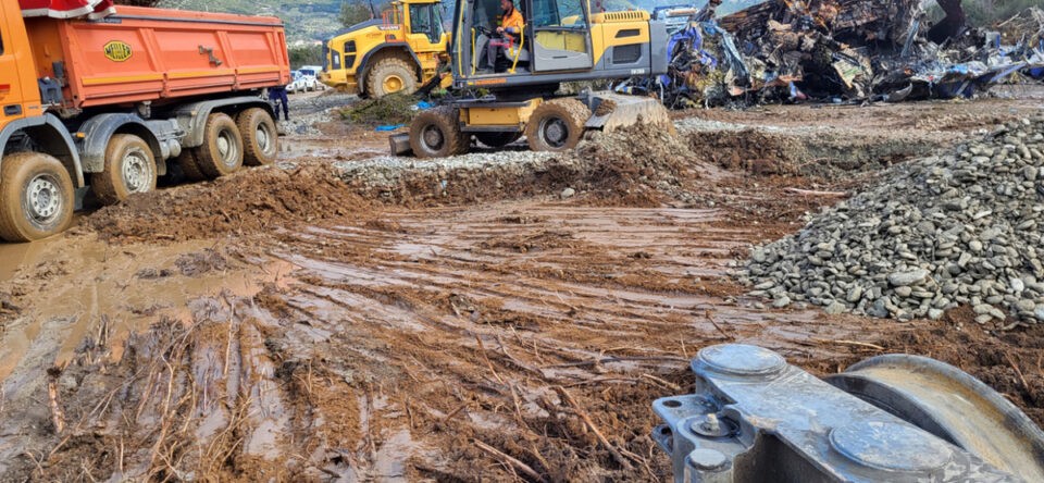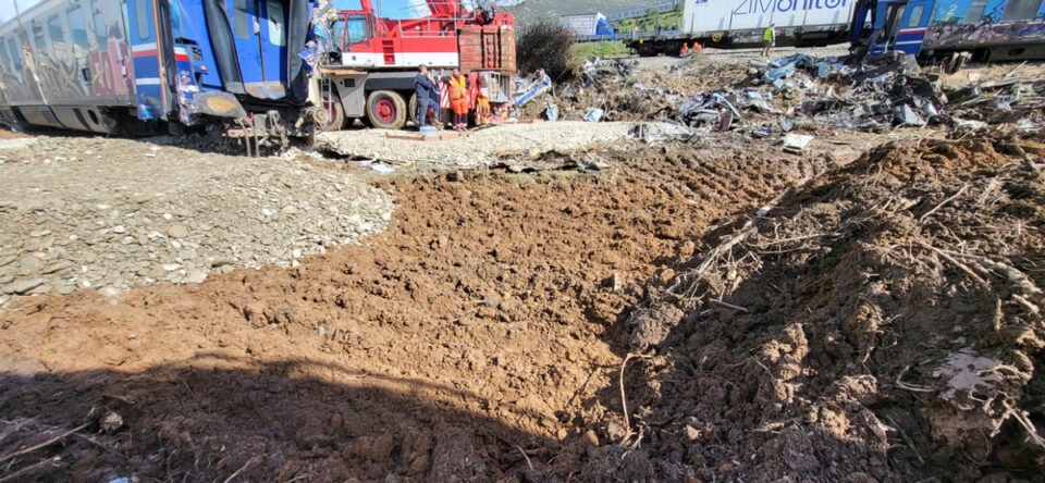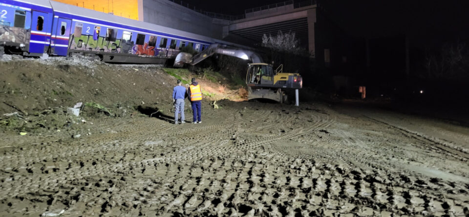 Στις φωτογραφίες και τα βίντεο φαίνονται μπουλντόζες και εργάτες λίγο μετά τη σύγκρουση στα Τεμπη να έχουν μετατρέψει τον τόπο του δυστυχήματος σε εργοτάξιο.
