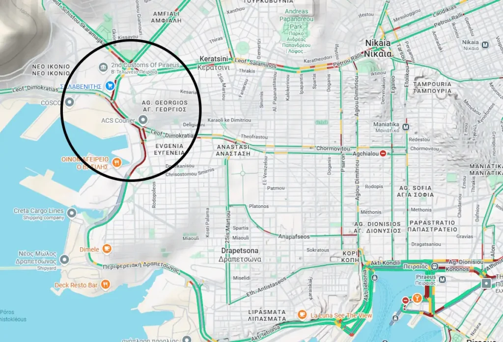 Λόγω της σύγκρουσης και της διαρροής καυσίμου από ένα όχημα, η Τροχαία προχώρησε σε διακοπή της κυκλοφορίας στην Περιφερειακή Δραπετσώνας και στα δύο ρεύματα, από το ύψος της Ιχθυόσκαλας έως και το ύψος της Πύλης Ε1.