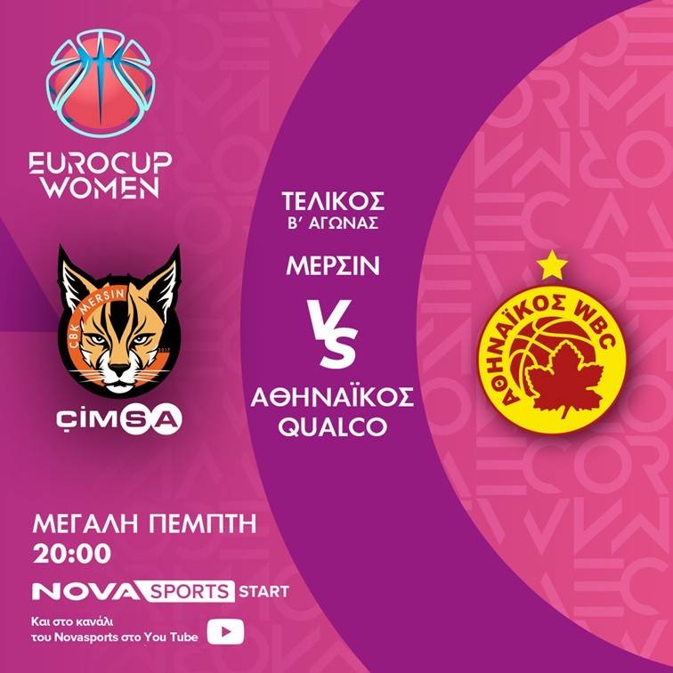 20:00 EuroCup γυναικών-Τελικός 2ος αγώνας: Μερσίν-Αθηναϊκός Qualco Novasports Start & You Tube σε περιγραφή του Γιαννίκου Δούσκα
