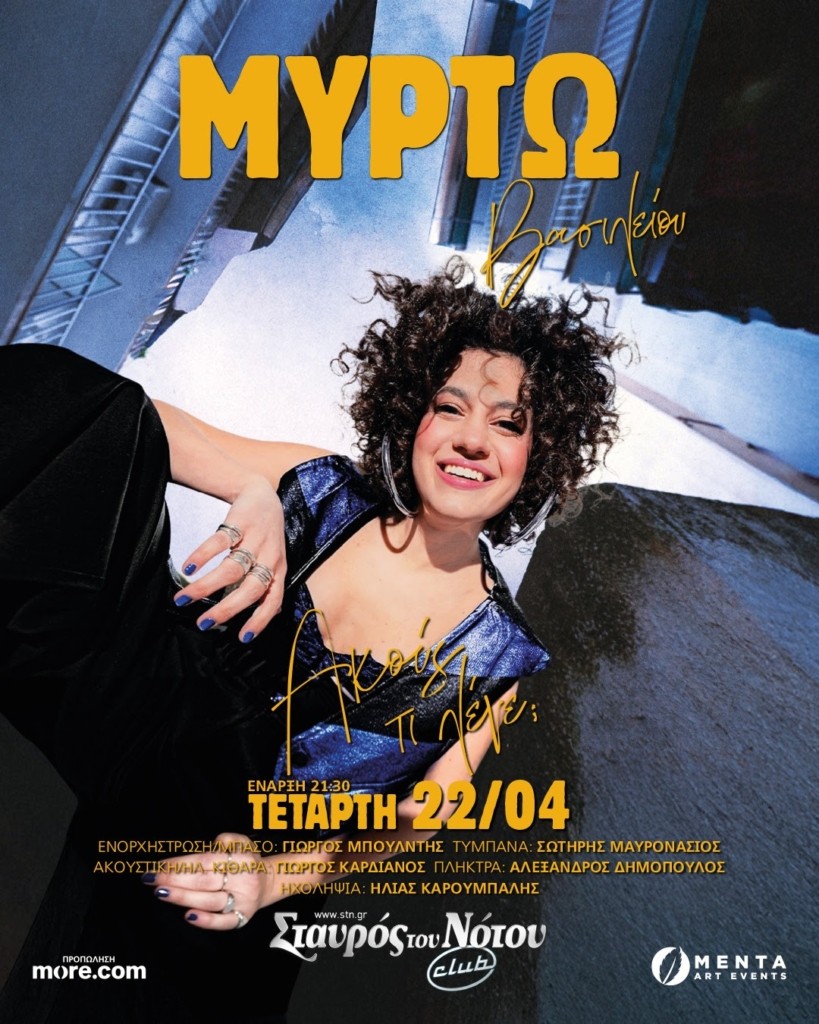 Η Μυρτώ Βασιλείου και η μπάντα της, πιο δημιουργικοί από ποτέ, επιστρέφουν στο Club του Σταυρού του Νότου την Τετάρτη 22 Απριλίου!