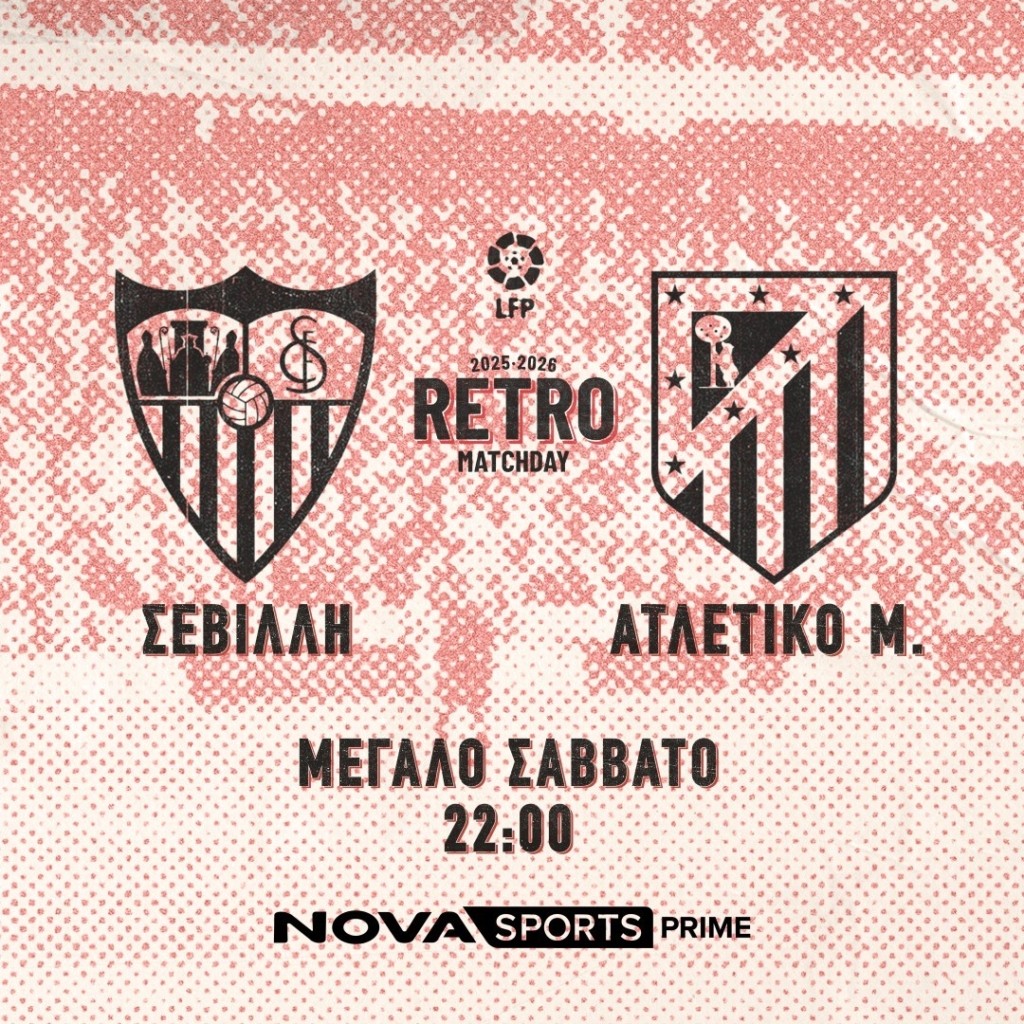 22:00 La Liga: Σεβίλλη-Ατλέτικο Μαδρίτης Novasports Prime σε περιγραφή του Νίκου Παολίνου