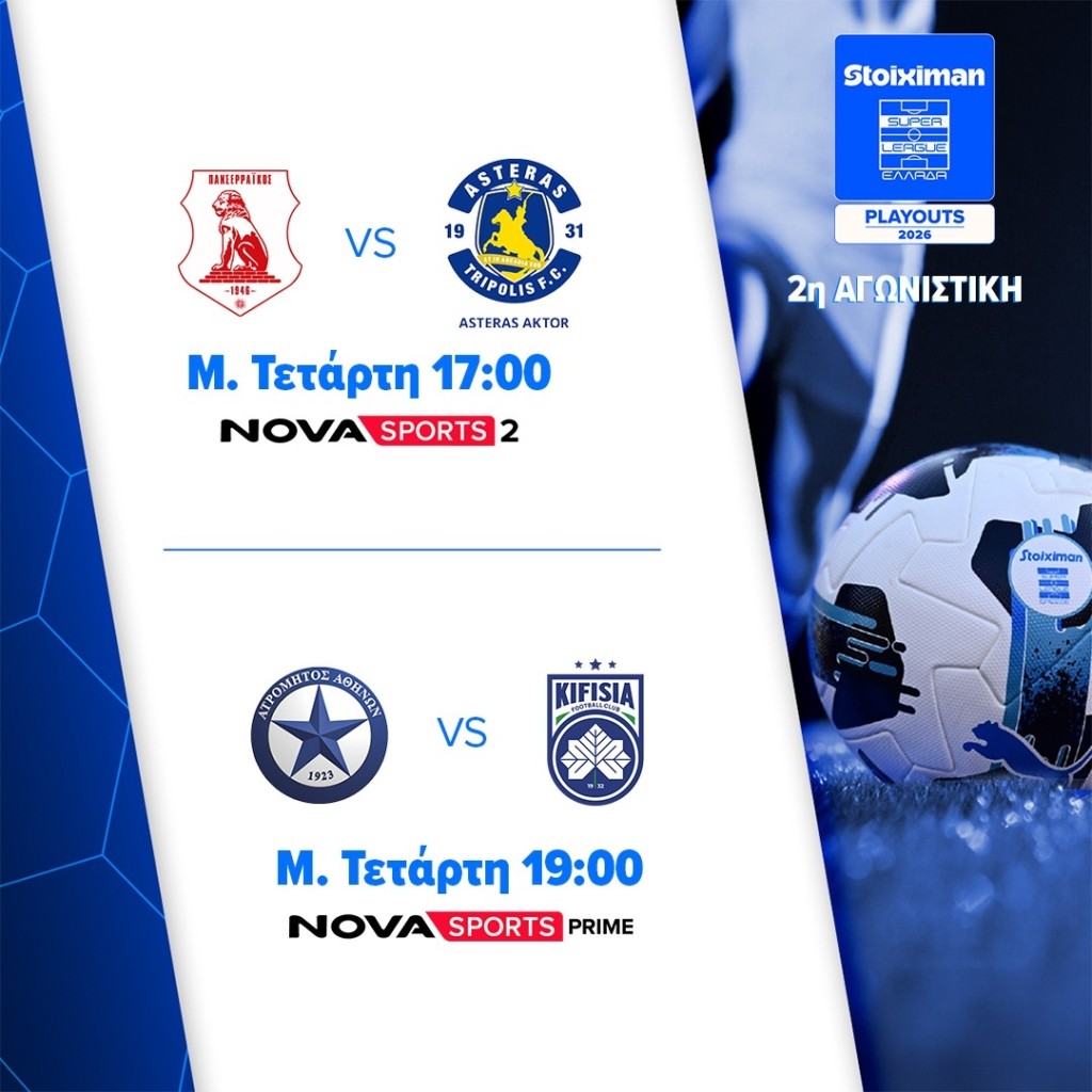 19:00 Stoiximan SuperLeague Playouts: Ατρόμητος-Κηφισιά Novasports Prime σε περιγραφή του Ισίδωρου Πρίντεζη και ρεπορτάζ του Γιώργου Αργυρόγλου