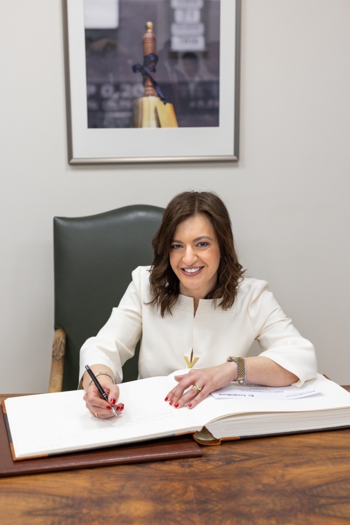 Η Διευθύνουσα Σύμβουλος της CrediaBank, Ελένη Βρεττού χτύπησε σήμερα το καμπανάκι στο Χρηματιστήριο Αθηνών, σηματοδοτώντας την έναρξη της πρώτης συνεδρίασης διαπραγμάτευσης των νέων μετοχών της CrediaBank, που προέκυψαν από την ιδιαίτερα επιτυχημένη αύξηση του μετοχικού της κεφαλαίου.