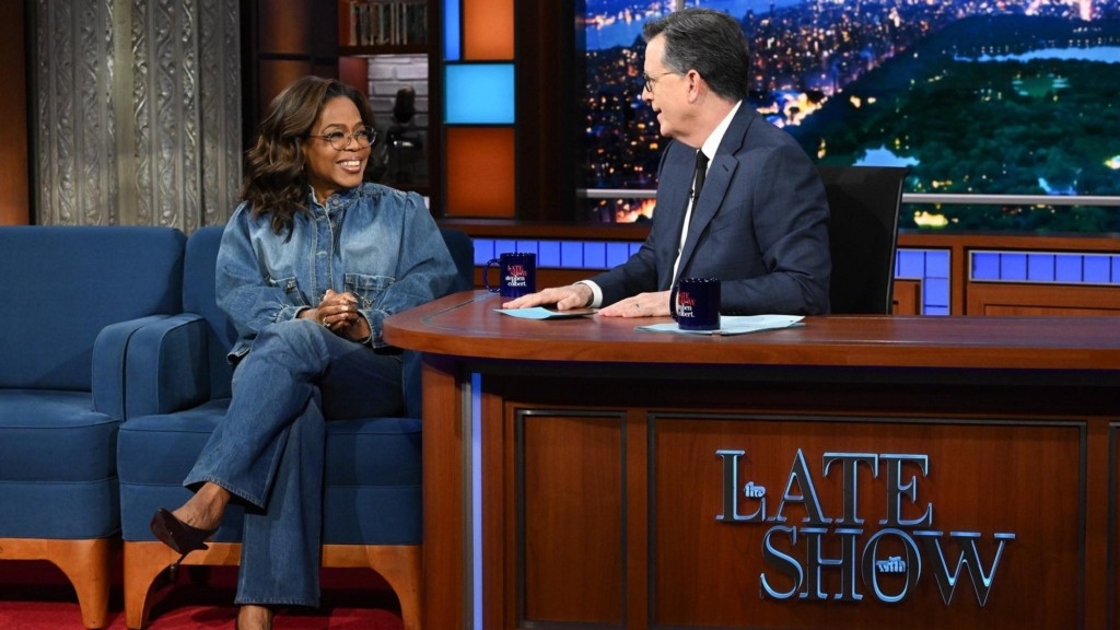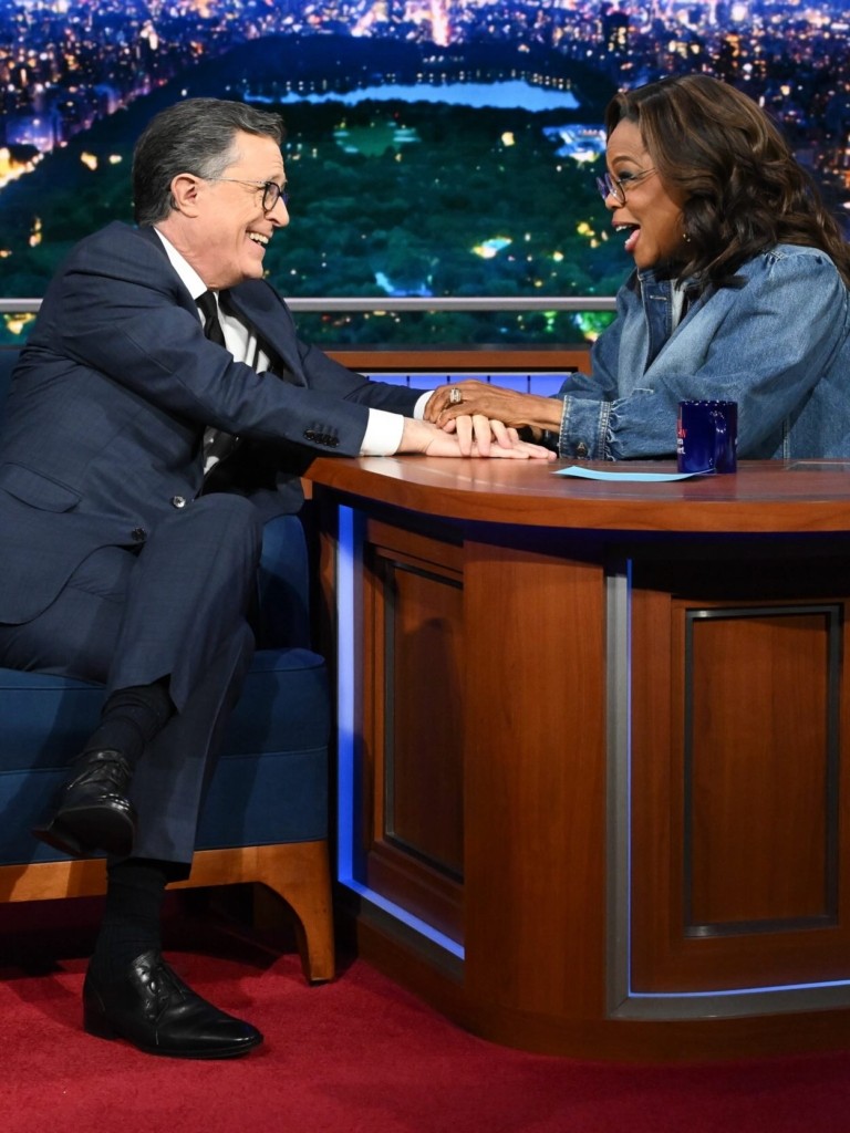 Εν τω μεταξύ στο προχθεσινό «Late Show» ο Κολμπέρ φιλοξένησε την Όπρα Γουίνφρεϊ και άλλαξαν θέσεις.