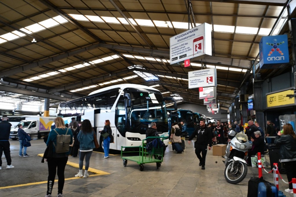 Η πληρότητα των λεωφορείων που αναχωρούν από το σταθμό υπεραστικών στον Κηφισό αγγίζει το απόλυτο 100%, με τους επιβάτες να κατακλύζουν τον χώρο περιμένοντας να ταξιδέψουν προς τους αγαπημένους τους προορισμούς στην ηπειρωτική Ελλάδα.