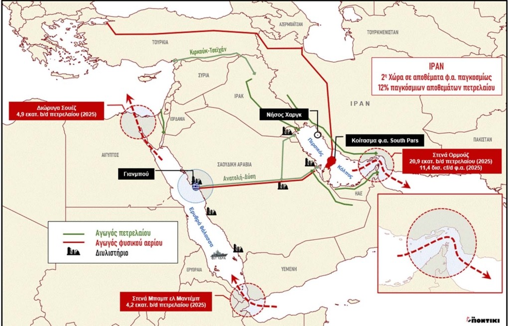 Σύμφωνα με πρόσφατη ανάλυση του Παγκόσμιου Οικονομικού Φόρουμ (World Economic Forum – WEF), η σύγκρουση έχει εξασθενήσει σημαντικά τις ροές ενέργειας μέσω των Στενών του Ορμούζ, μιας στρατηγικής σημασίας ναυτιλιακής διαδρομής, από όπου μεταφέρεται περίπου το 20% – 25% του παγκόσμιου εμπορίου πετρελαίου και σημαντικό ποσοστό του υγροποιημένου φυσικού αερίου (LNG) προς τις διεθνείς αγορές ενέργειας.