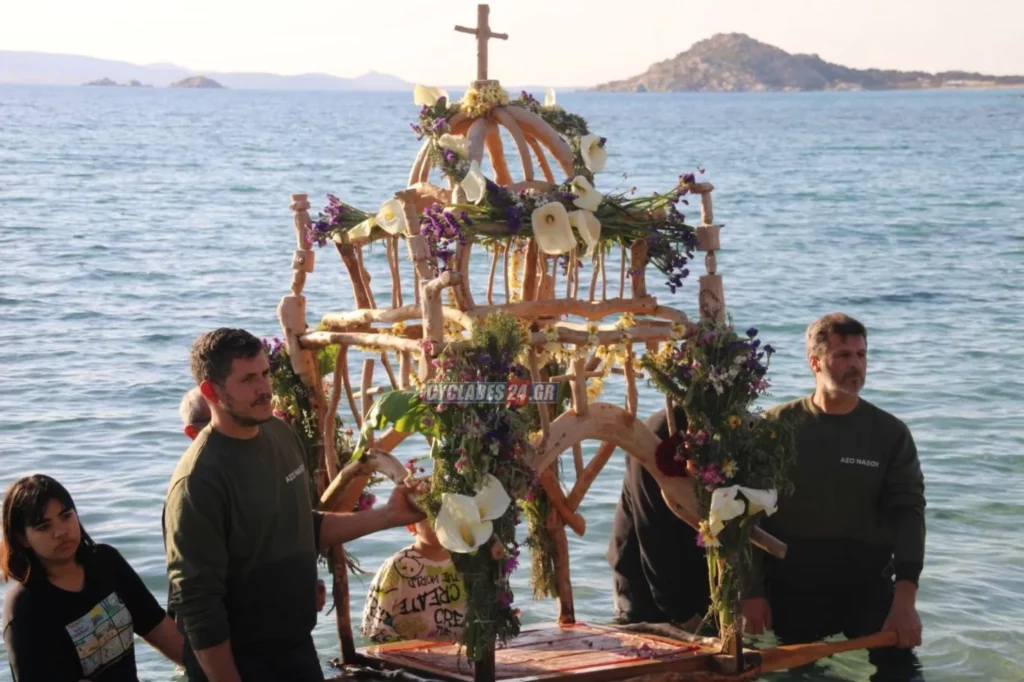 Το πασχαλινό έθιμο της Νάξου με την περιφορά του Επιταφίου μέσα στη θάλασσα αναβίωσε και φέτος, προσελκύοντας πλήθος πιστών και επισκεπτών που έδωσαν το «παρών» στο Καστράκι.