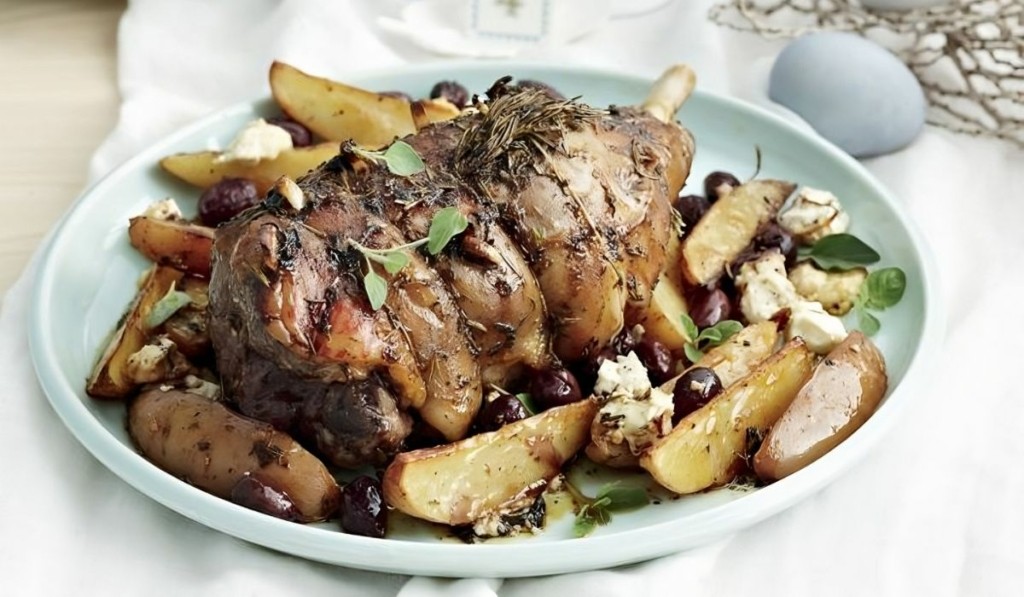 Σε αυτό το πιάτο συνδυάζεται το αρνάκι, μελωμένο και τραγανό, με τις λεμονοριγανάτες πατάτες, που λιώνουν στο στόμα και την προσθήκη των ελιών Καλαμάτας και της σκληρής πικάντικης φέτας.