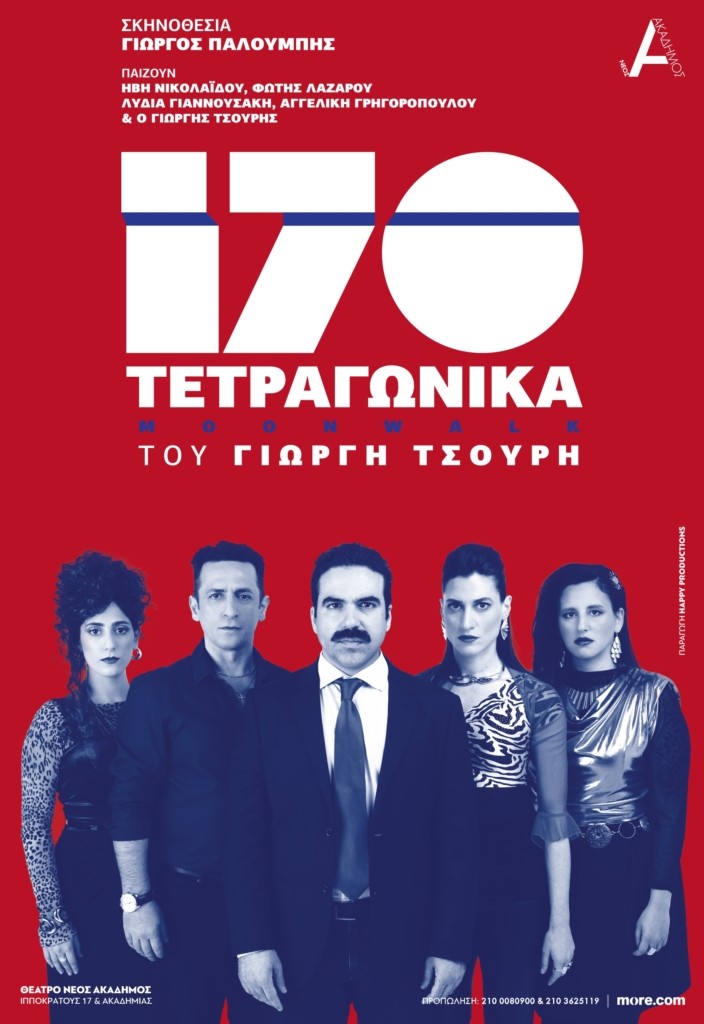 Η Happy Productions παρουσιάζει, από 17 Απριλίου 2026, στο Θέατρο ΝΕΟΣ ΑΚΑΔΗΜΟΣ, για περιορισμένο αριθμό παραστάσεων, ένα από τα πλέον επιτυχημένα νεοελληνικά κείμενα της τελευταίας δεκαετίας, τα «170 ΤΕΤΡΑΓΩΝΙΚΑ» του Γιωργή Τσουρή σε σκηνοθεσία Γιώργου Παλούμπη.