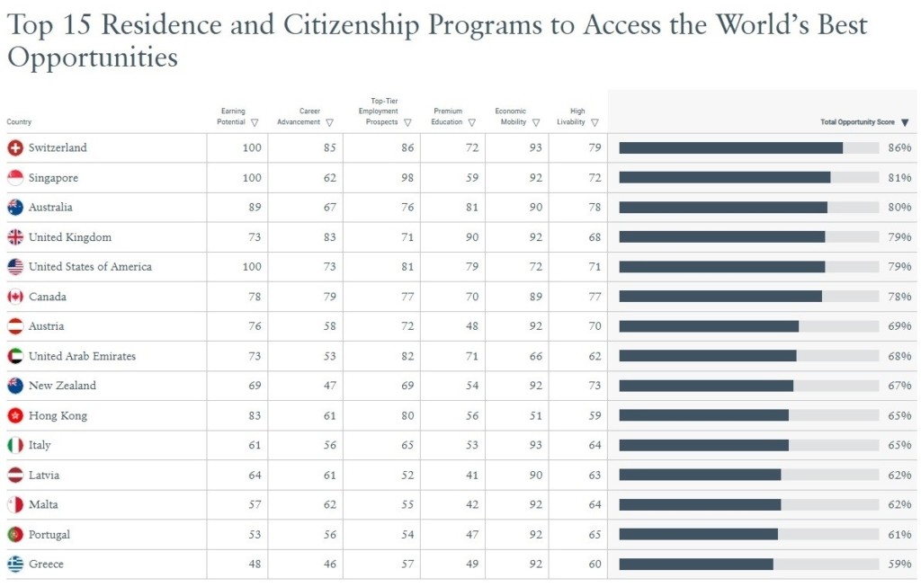 Η μετανάστευση για μια καλύτερη ζωή αποτελεί μια διαδεδομένη πρακτική από την αυγή της ανθρώπινης ύπαρξης, και ο Δείκτης Ευκαιριών της εταιρείας Henley αναδεικνύει τις χώρες «όπου η πρόσβαση, τα δίκτυα και η ποιότητα των θεσμών συντελούν στη μεγιστοποίηση της επαγγελματικής εξέλιξης» και του «δυναμικού εισοδήματος».