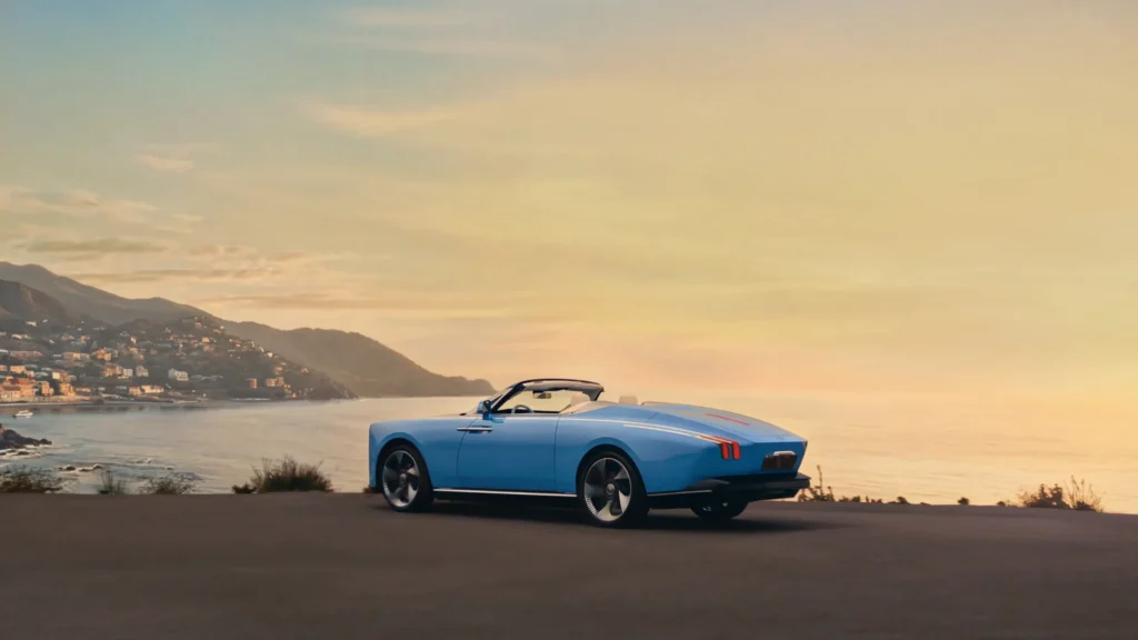 Το πρωτότυπο που παρουσιάστηκε σήμερα φορά την απόχρωση Côte d’Azur Blue, εμπνευσμένη από την 17EX του 1928, με διακριτικές κόκκινες νιφάδες μέσα στο χρώμα ως αναφορά στα κόκκινα σήματα των ιστορικών EX μοντέλων. Στο εσωτερικό, οι τόνοι Charles Blue, Grace White, Deep Navy και διακριτικές πινελιές Peony Pink δημιουργούν μια ατμόσφαιρα που παραπέμπει άμεσα στη Γαλλική Ριβιέρα και στον κόσμο που η Rolls-Royce θέλει να χτίσει γύρω από το αυτοκίνητο.
